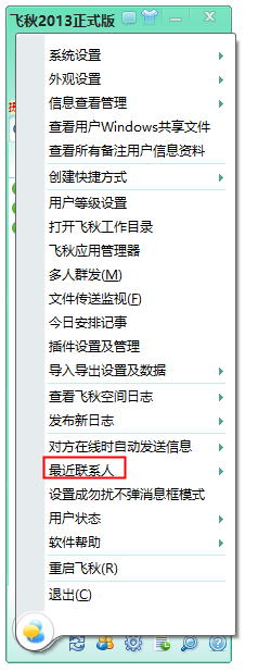 当然了,你也可以直接查找某一个IP好友,回到软件主界面,点击右下角图标,弹出列表,选择【最近联系人】