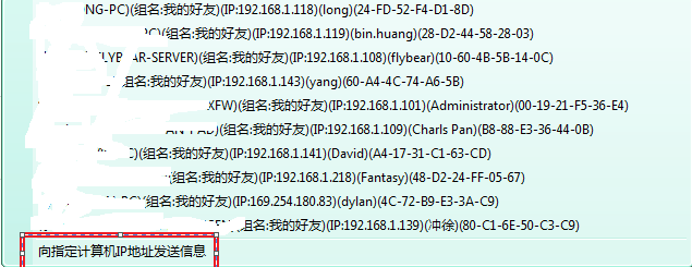 如图,点击【向指定计算机IP地址发送消息】,弹出对话框,输入对方IP,输入消息,点击【发送】,对方就能成功接收你的消息