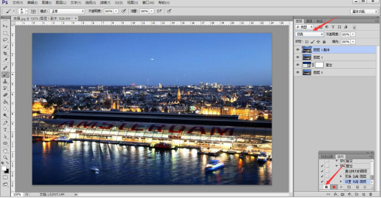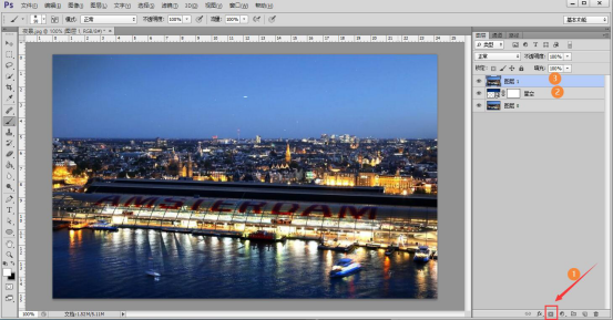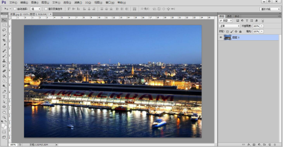 1. 首先,我们打开 Photoshop ,将需要制作梦幻效果的夜景图片导入。
