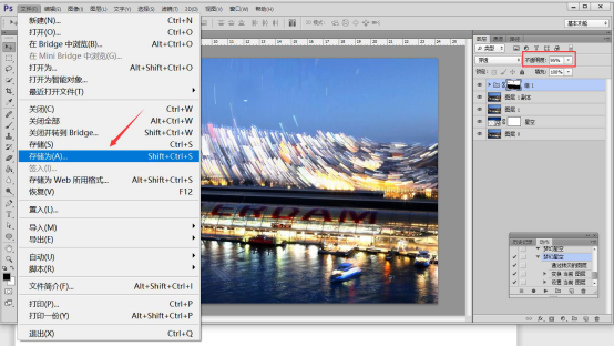 9. 如果用户想要 Photoshop 做的梦幻效果更美,就调节它的不透明度。最后,点击菜单栏“文件”中的“存储为”将这张梦幻效果的图片保存下来。