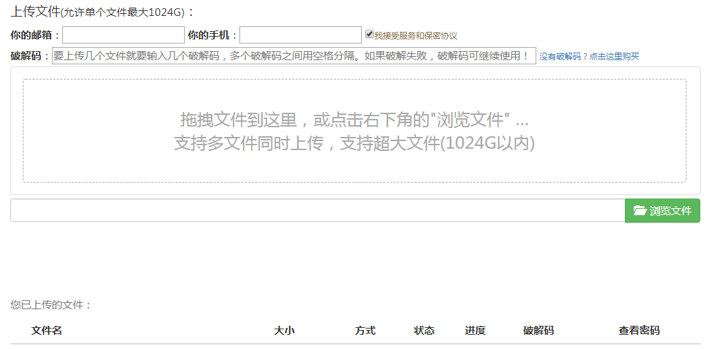 进入以下界面,接受协议,填写自己的联系方式(邮箱或者手机号),输入破解码(可以购买),然后拖拽 RAR 文件到选框,或者点击【浏览文件】,