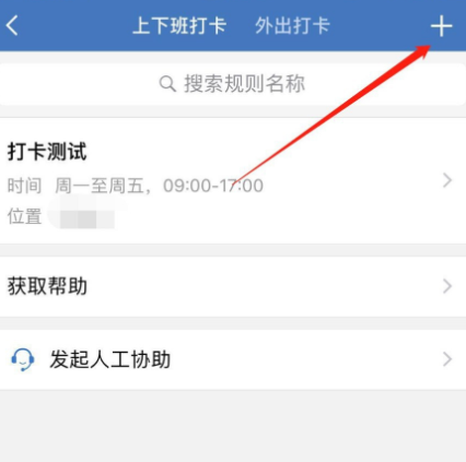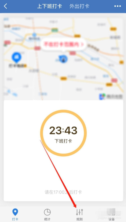 进入打卡服务窗口,点击切换【上下班打卡】,然后点击底部的【规则】,
