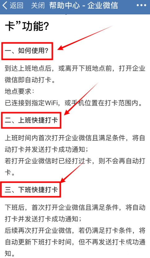 另外,很多人对于企业微信的上下班快捷打卡功能存在疑问,那么不妨看看官方说明。