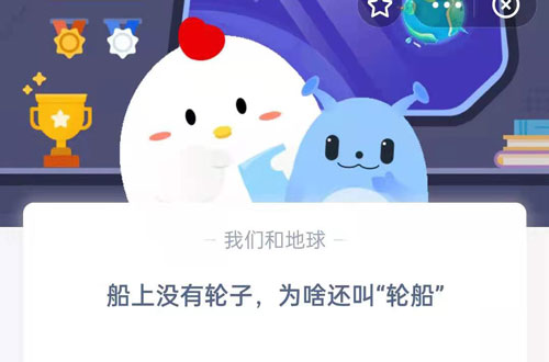 在支付宝蚂蚁庄园每日一题中,通过完成当日的任务答题可以获得小鸡饲料,2021年8月9日的问题是问船上没有轮子,为啥还叫“轮船”?轮船没有轮子为什么叫轮船蚂蚁庄园?下面就和小编一起来看看吧!