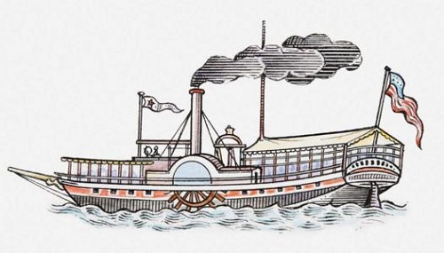 在1807年,美国青年富尔顿发明了轮船,早期发明的轮船是带轮子的,在两侧装有两只大轮(蹼轮),轮子的比一间房子还高。当这艘既不用桨,又不用帆的大船在哈德逊河上行驶的时候,两岸站满了看热闹的人。