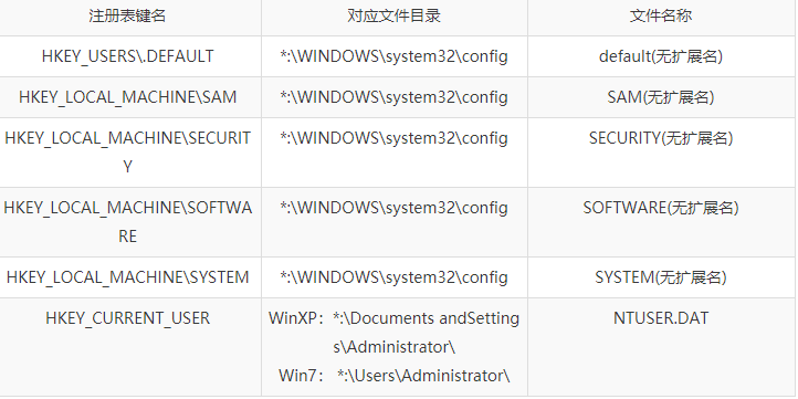 根据如下对应关系,找到你需要修改注册表对应的文件,并挂载它!(*代表你挂载的盘符)