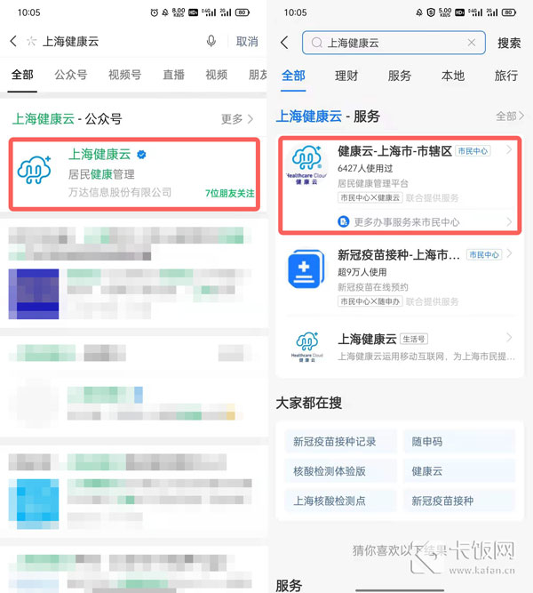 2、或者使用微信、支付宝搜索【上海健康云】小程序进入;
