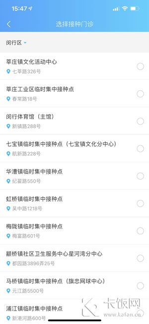 7、按照你所在的区域选择接种门诊,勾选后点击进入下一步;