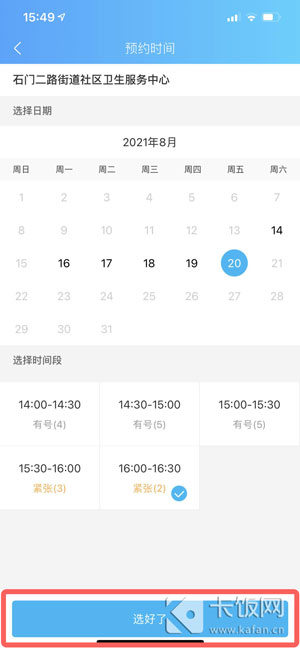8、选择需要接种的日期、时间段,点击【选好了】;