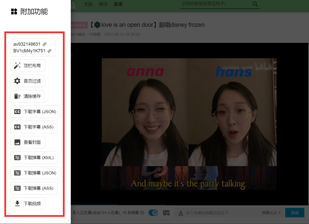 以往下载 B 站视频或者视频封面都需要借助一些第三方工具,现在有了这款脚本直接在播放页面即可下载,非常方便,并且从视频到封面乃至字幕、弹幕都可以下载。