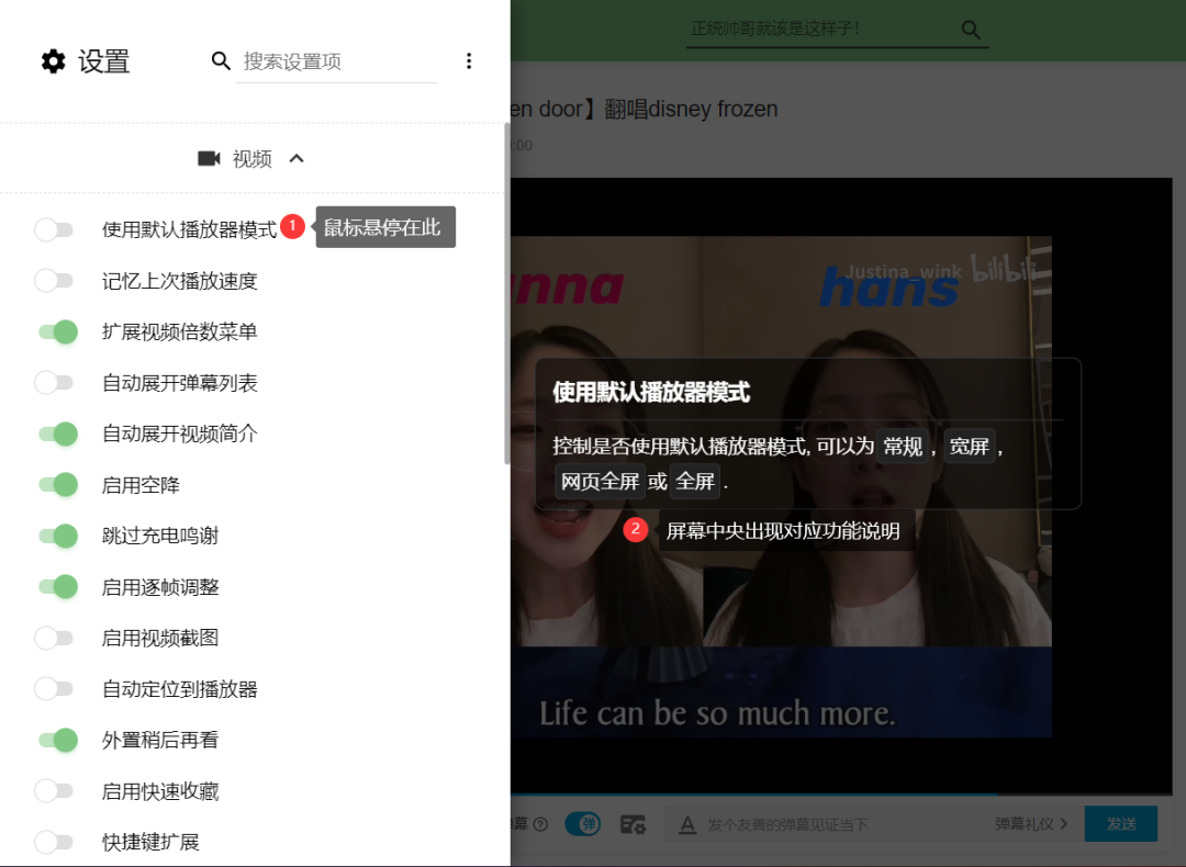 除此之外,还可以设置简化评论区,隐藏 B 站的视频推荐及特殊弹幕等,给自己清爽的观看体验。