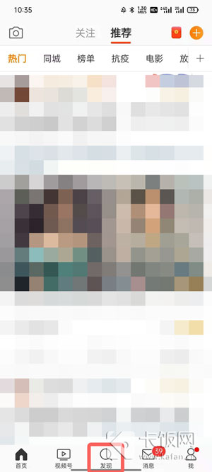 1、打开微博点击【发现】,在发现页面点击搜索框;