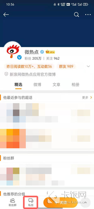 2、搜索【微热点】,然后进入用户的主页,点击【私信】;