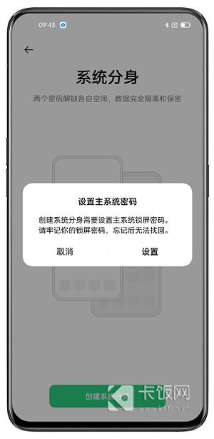4、如果你的手机没有设置锁屏密码(系统分身无法使用面部解锁),会提示先设置一个锁屏密码;