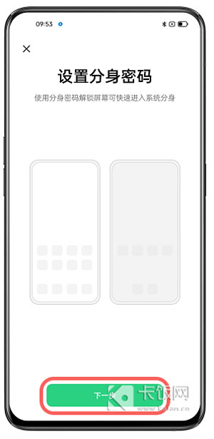 5、设置完成锁屏密码后返回,点击【下一步】设置你的系统分身密码,该密码需要和锁屏密码区分(两个密码不能相同,主要用来区分和进入主系统、副系统);
