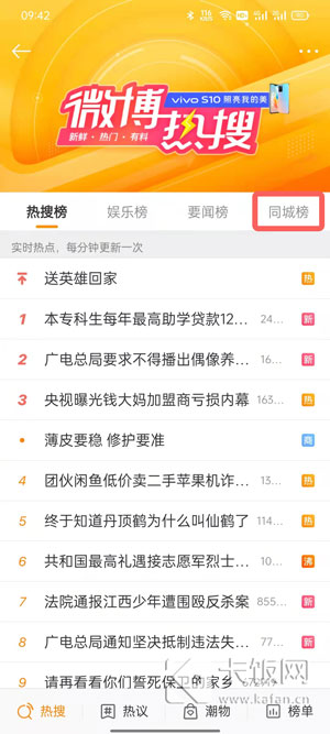 2、在热搜的选项中,点击右侧的【同城榜】;
