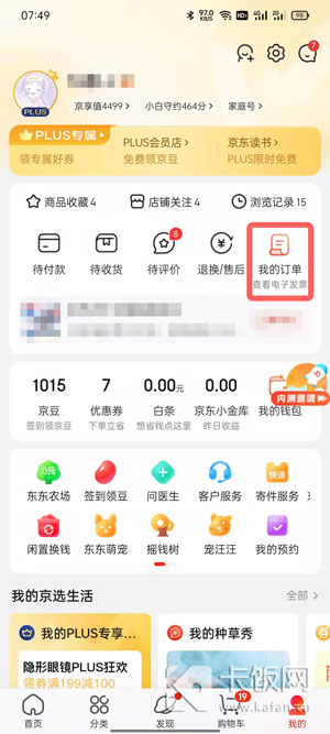 15、在我的订单中,找到京东E卡购买订单,点击进入;