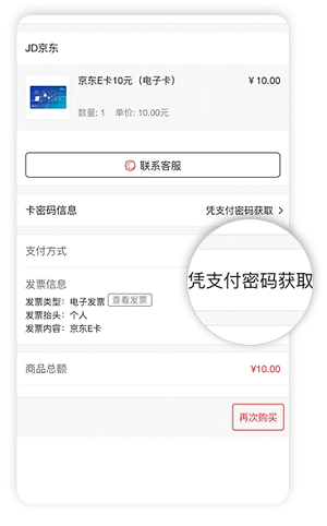 16、然后在订单详情中,选择【支付密码】或者【短信验证码】获取卡密码;