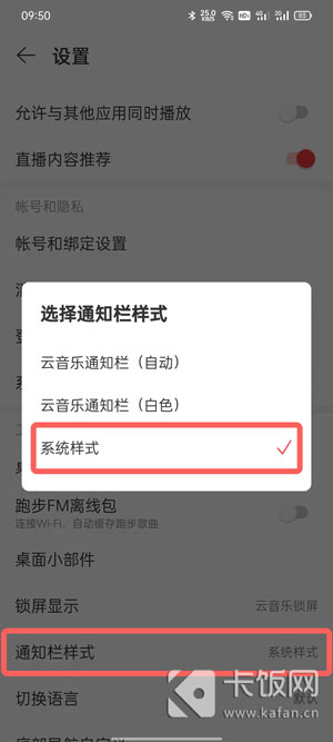 8、如果经常使用网易云音乐,可在打开后点击左上角的【三】-【设置】-【通知栏样式】-【系统样式】,同样更改为系统样式显示;