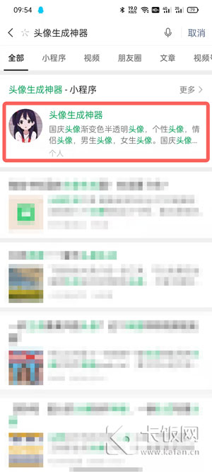 7、在维信中搜索【头像生成神器】小程序,点击进入;