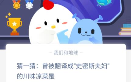 在蚂蚁庄园中每天想要领取私聊就需要回答对应的题目,而10.6的一个题目就是猜—猜曾被翻译成史密斯夫妇的川味凉菜是什么,这里为大家带来介绍,看一下该题目的具体选项答案吧。