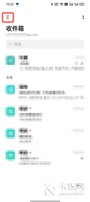 1、打开手机上自带的邮件app,在首页点击左上角的【三】查看更多设置;