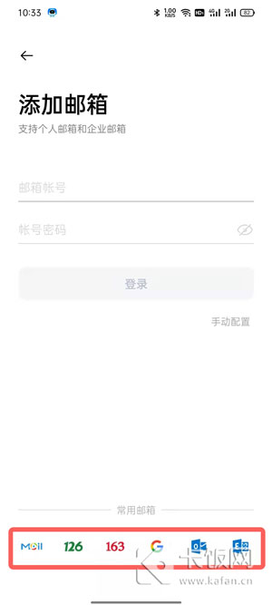 3、在下方选择需要绑定的邮箱,如果不在常用邮箱中,则直接输入邮箱账号和密码进行登录;