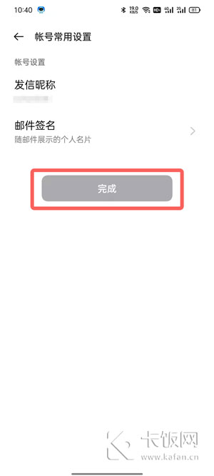 5、绑定成功后会进入账号常用设置,对绑定的邮箱账号设置昵称、邮件签名等,点击【完成】;