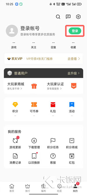 1、打开oppo游戏中心,点击进入【我的】界面,然后点击上方的【登录账号】;