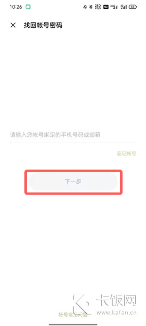 3、通过登录账号绑定的手机号码或者邮箱,点击【下一步】;