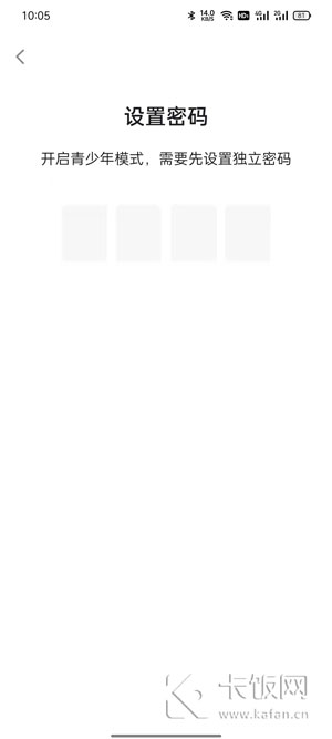 5、为青少年模式设置独立的四位数密码,再次输入确认密码即可开启;