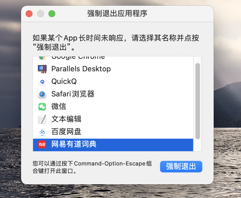 警告:当您按照以下步骤强制关闭程序时,任何未保存的数据都将丢失。只有当应用程序挂起且无法正常退出时,您才应该以这种方式关闭程序。