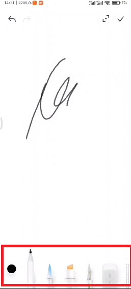 2、在备忘录内容编辑界面中,我们需要点击输入法上方的【铅笔】图标的功能,进入到涂鸦功能中;