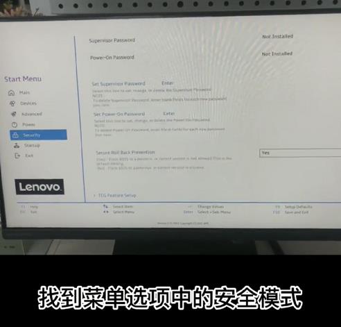 首先 . 重启电脑 - 进入主板设置界面 - 找到菜单选项中安全模式 - 安全模式选择关闭,