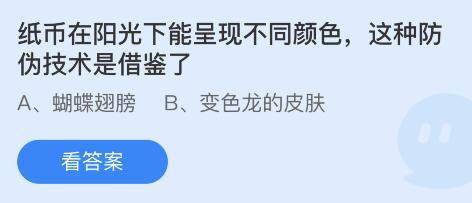 问题1:纸币在阳光下能呈现不同颜色,这种防伪技术是借鉴了?