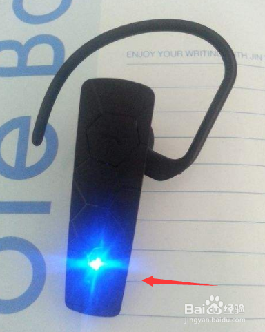 2、然后我们再确定蓝牙耳机是否充电完成满电量了,若蓝牙耳机未曾与任何设备配对过,则直接开机将进入配对模式,此时指示灯(如蓝色)开始快速闪烁。