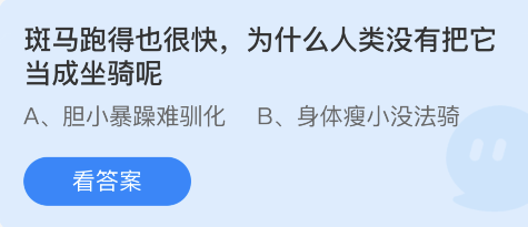 问题1:斑马跑得也很快,为什么人类没有把它当成坐骑呢?