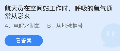 问题2:航天员在空间站工作时,呼吸的氧气通常从哪来?