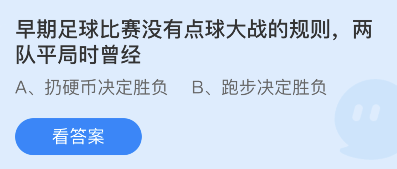 问题1:早期足球比赛没有点球大战的规则,两队平局时曾经?