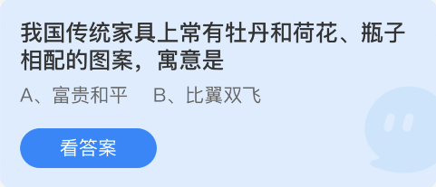 问题2:我国传统家具上常有牡丹和荷花、瓶子相配的图案,寓意是?