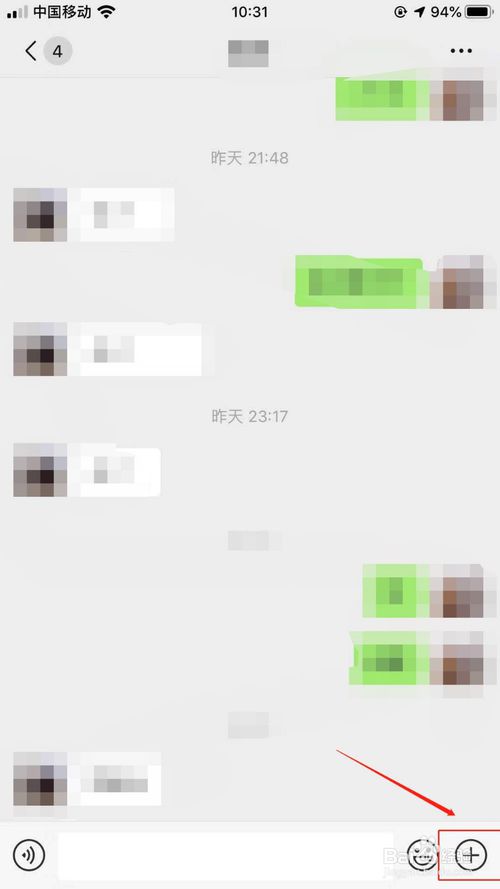 4、进入聊天界面以后,点击右下方的+号。