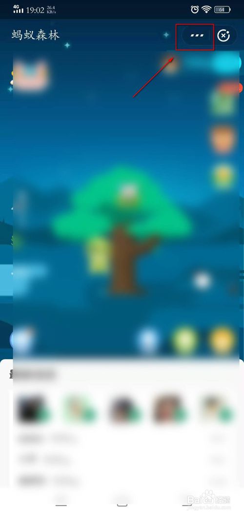 3、进入蚂蚁森林后,点击最上面的三个点。