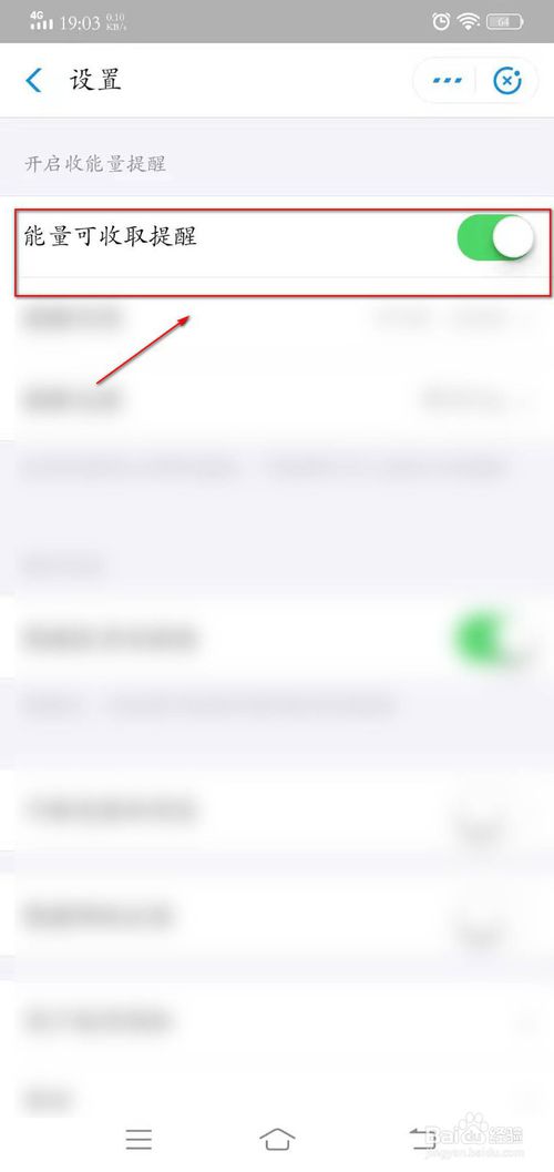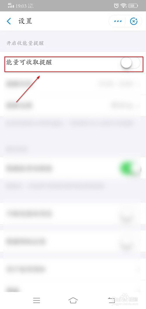 5、看到最上面的能量可收取提醒,关闭后面的绿色按钮。