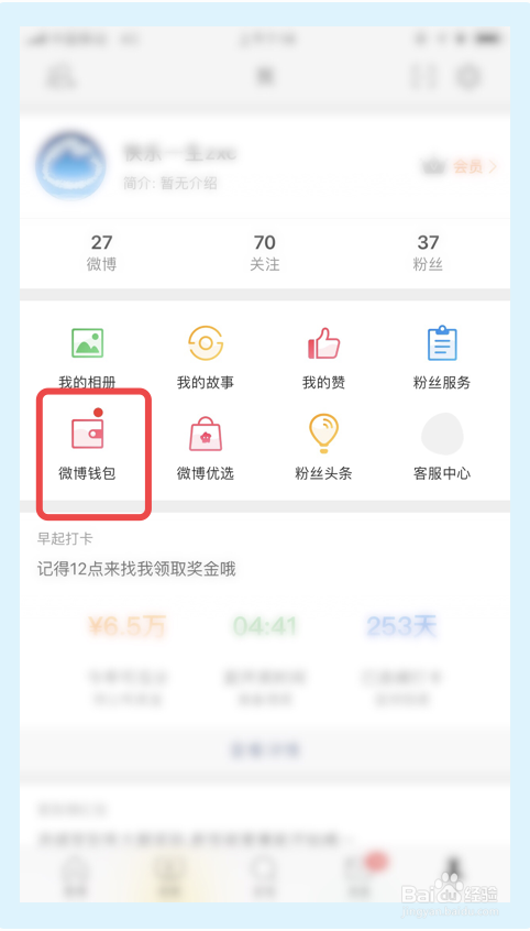 3、在【我】界面,选择并点击【微博钱包】选项。