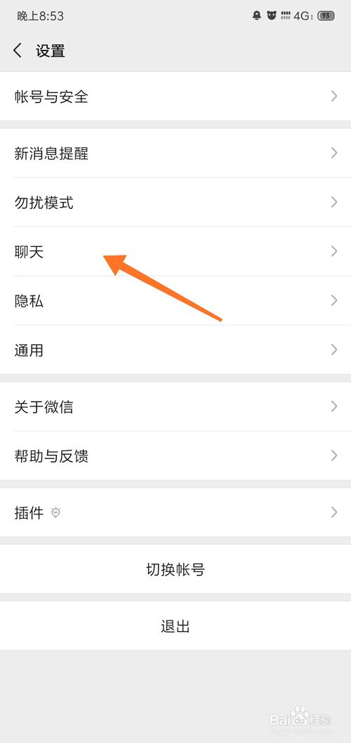 3、在设置界面内,点击“聊天”,如图所示;