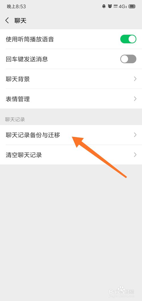 4、进入后,选择“聊天记录备份与迁移”选项,如图所示;
