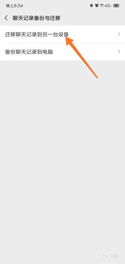 5、点击后,选择“迁移聊天记录到另一台设备”,如图所示;