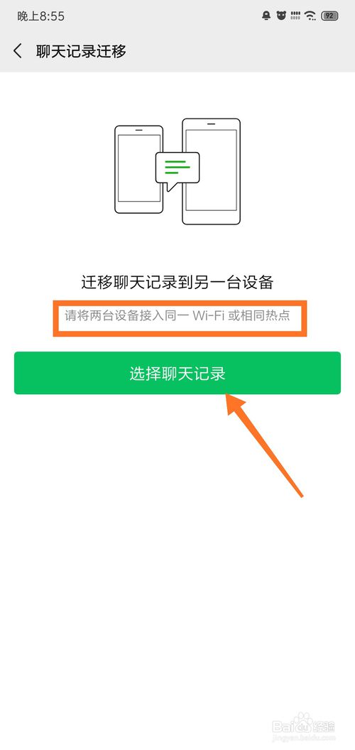 6、进入后,点击“选择聊天记录”进入,需要连接同WiFi,如图所示;