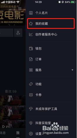 4、在设置列表中找到我的收藏功能,点击进入收藏列表