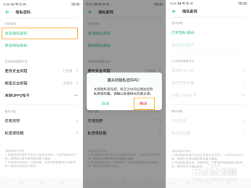 2、输入之前设置的应用密码,点击【关闭隐私密码】,根据提示点击【关闭】,再输入之前设置的密码即可关闭。